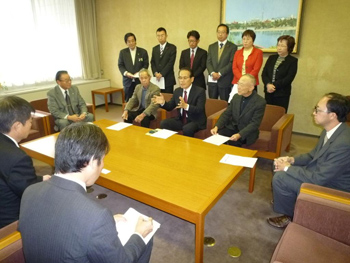 市長候補としてたたかった有馬精一・同会事務局長は「国保料が高すぎて払えない実態を直接市長に聞いていただきたい」と述べて面会を求めました。市長室秘書課が応対しました。